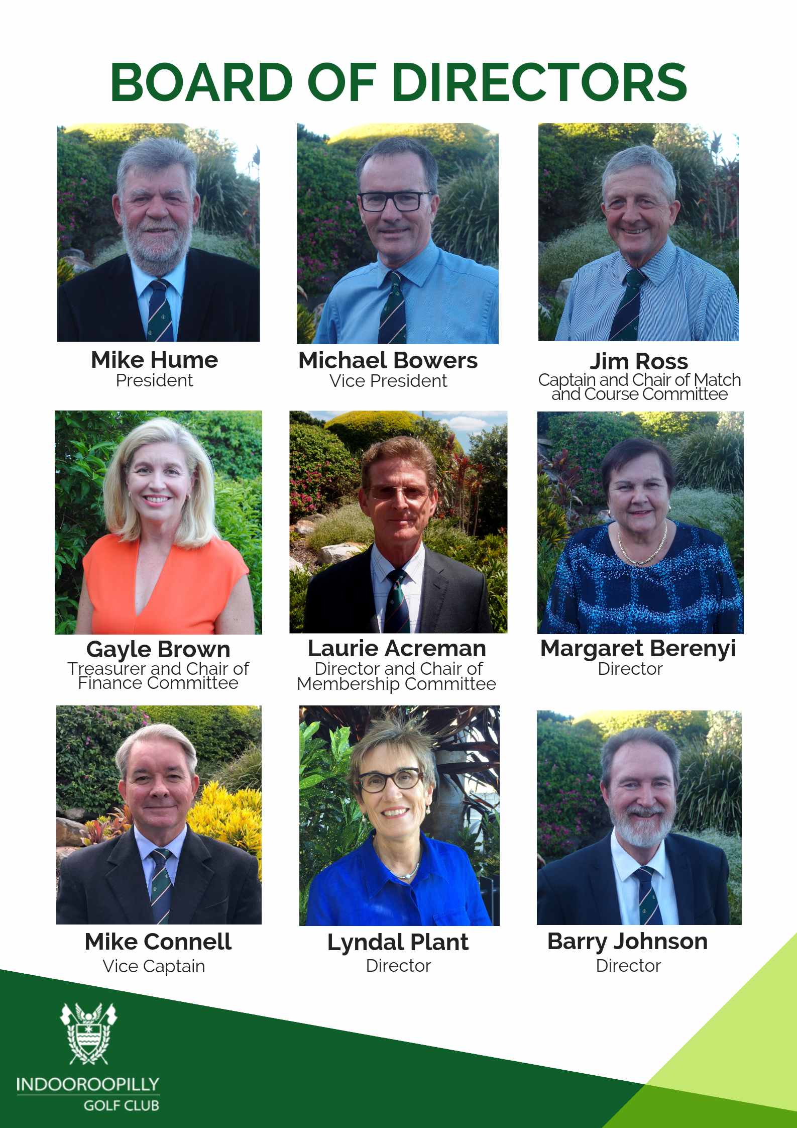 President Joan James Vice President Suzanne Balmer Captain Christine Poole Vice Captain Sue-Ellen Hopkins Committee Member Mary Burns Committee Member Helen Cronin Committee Member Pauline Sinclair Committee Member Claire Steffensen Committee Member … Continue reading Board and Management