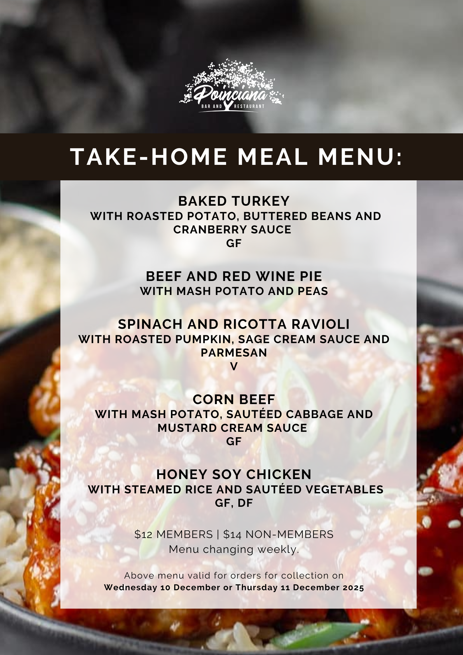 The final Take-home meal order of 2025 will open at 12pm on Friday 12 December for collection on Wednesday 17 December and Thursday 18 December.