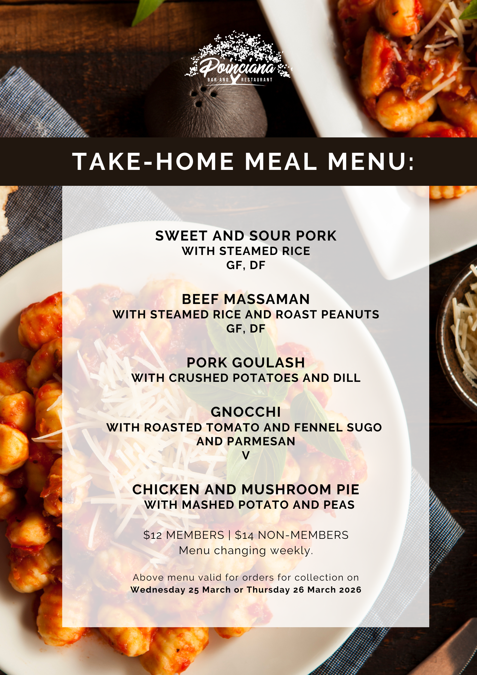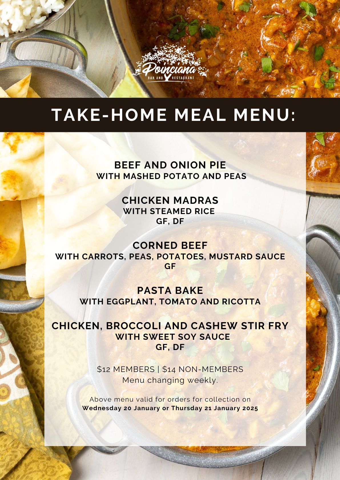 Take-home meal orders are available weekly via the booking link below.