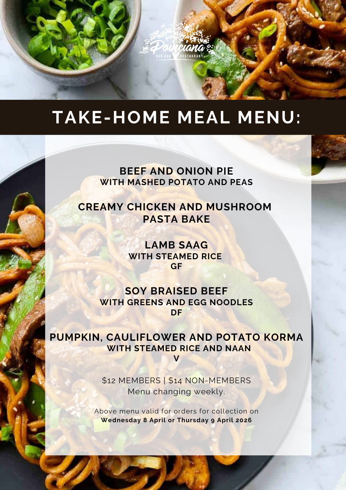 Take-home meal orders for collection on Wednesday 8 April or Thursday 9 April will be opening at 12:00pm, Friday 3 April.